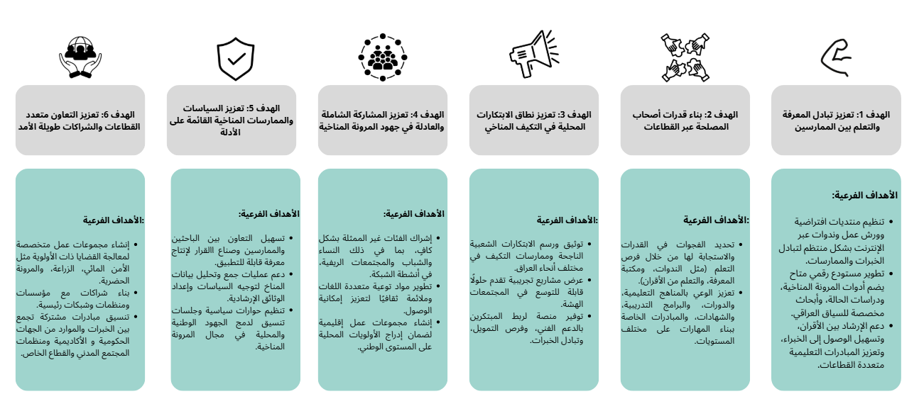 تعكس هذه الأهداف والغايات التزام منارة في العراق بإحداث تحول في مشهد المرونة المناخية من خلال التعاون، والابتكار، والشمولية، والعمل القائم على المعرفة.